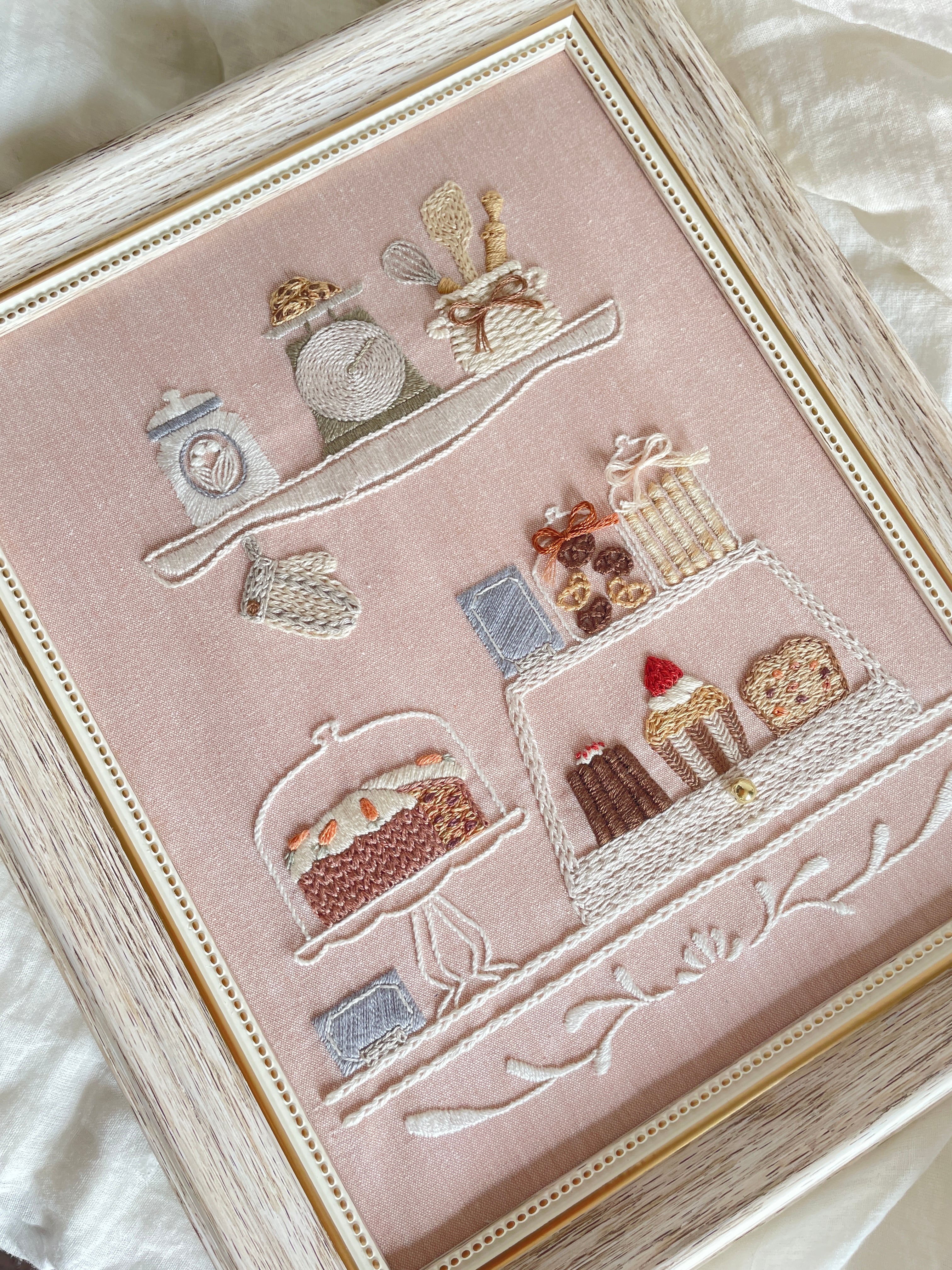 甘い香りが漂ってきそうな可愛いBake Shopの図案+生地+糸のセットです。
