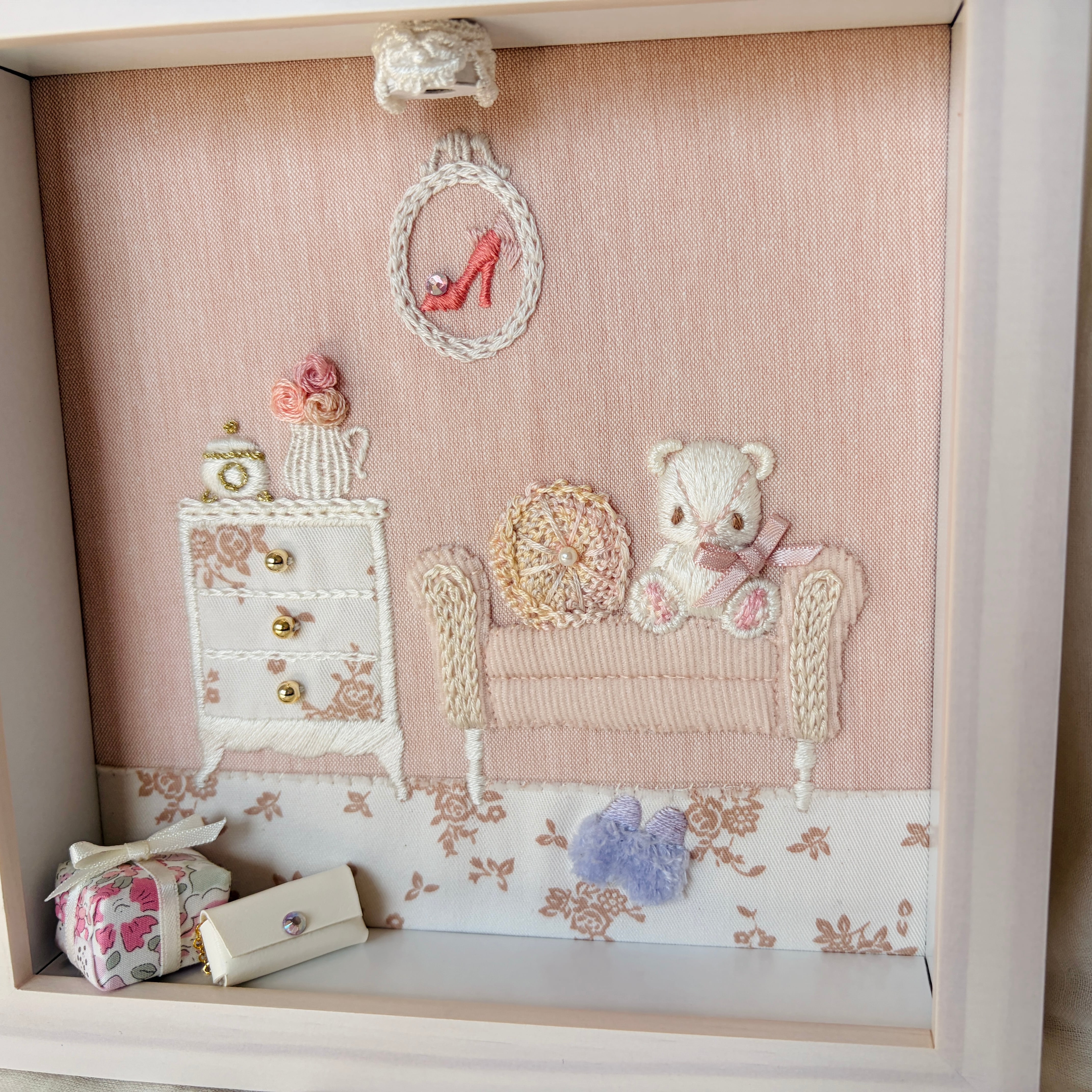 フレンチガーリーなお部屋を立体刺繍で表現しました。